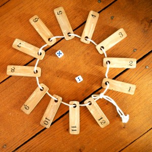 Chaque joueur place à son tour une pièce de bois sur le disque dans la zone correspondant au chiffre du dés.